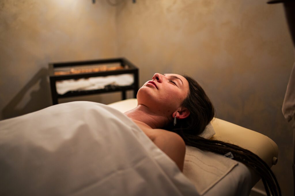 Aromatická masáž celého tela s bio levanduľou choduñskou uvoľňuje telo aj myseľ, podporuje duševnú rovnováhu a pomáha pri nespavosti. Priaznivo pôsobí na pohybový aparát, zmierňuje bolesti driekovej a krčnej chrbtice a podporuje detoxikáciu organizmu. Záver masáže patrí jemnému levanduľovému čajovému rituálu pre dokonalé uvoľnenie.